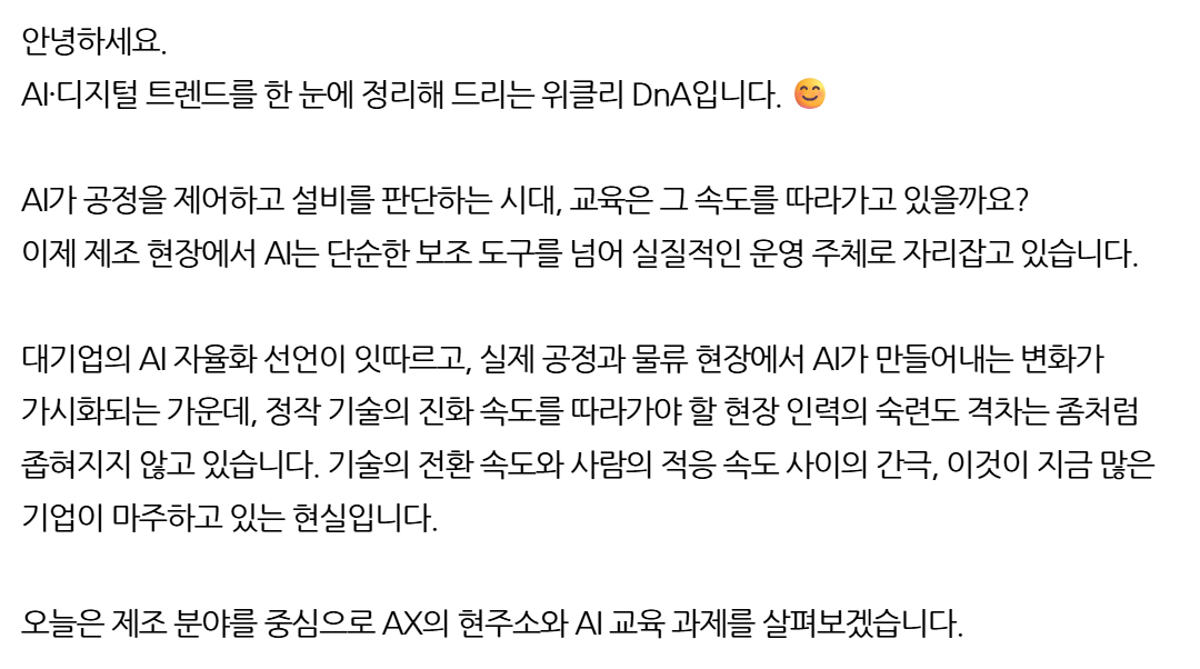 [뉴스레터] [위클리 DnA] AI 자율화 시대, 현장 인력을 위한 '진짜' 실무 역량이란?